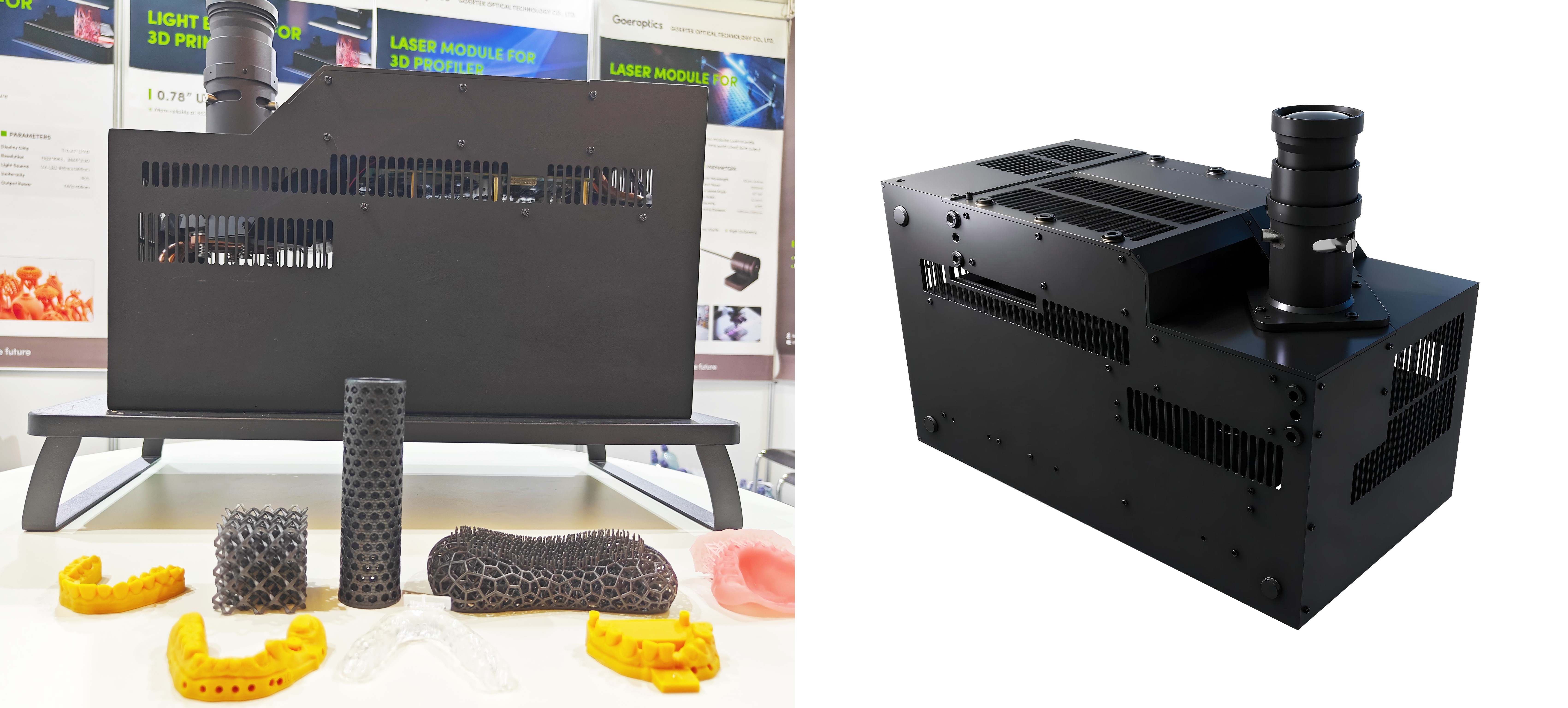 DLP 3D打印技術(shù)憑借數(shù)字光處理原理,可實(shí)現(xiàn)高精度復(fù)雜零件制造并減少材料浪費(fèi)。人生就是搏光學(xué)依托深厚光學(xué)積累,推出新一代DLP0.78″UV DMD 3D打印光機(jī)模組,該模組采用TI最新DLP?DMD芯片技術(shù),實(shí)現(xiàn)多項(xiàng)突破:4K分辨率搭配10W功率,結(jié)合TI最新工藝提升光學(xué)效率,加快打印速度;1000:1以上對(duì)比度減少殘?jiān)?,90%均勻性保障細(xì)節(jié)完整;全玻璃鏡頭、全金屬結(jié)構(gòu)加主動(dòng)散熱,提升穩(wěn)定性與耐用性;支持多尺寸大幅面,提供385nm/405nm?多波段UV光源,顯著提升DMD芯片使用壽命,滿(mǎn)足鞋類(lèi)、家居等大尺寸產(chǎn)品工業(yè)化需求。