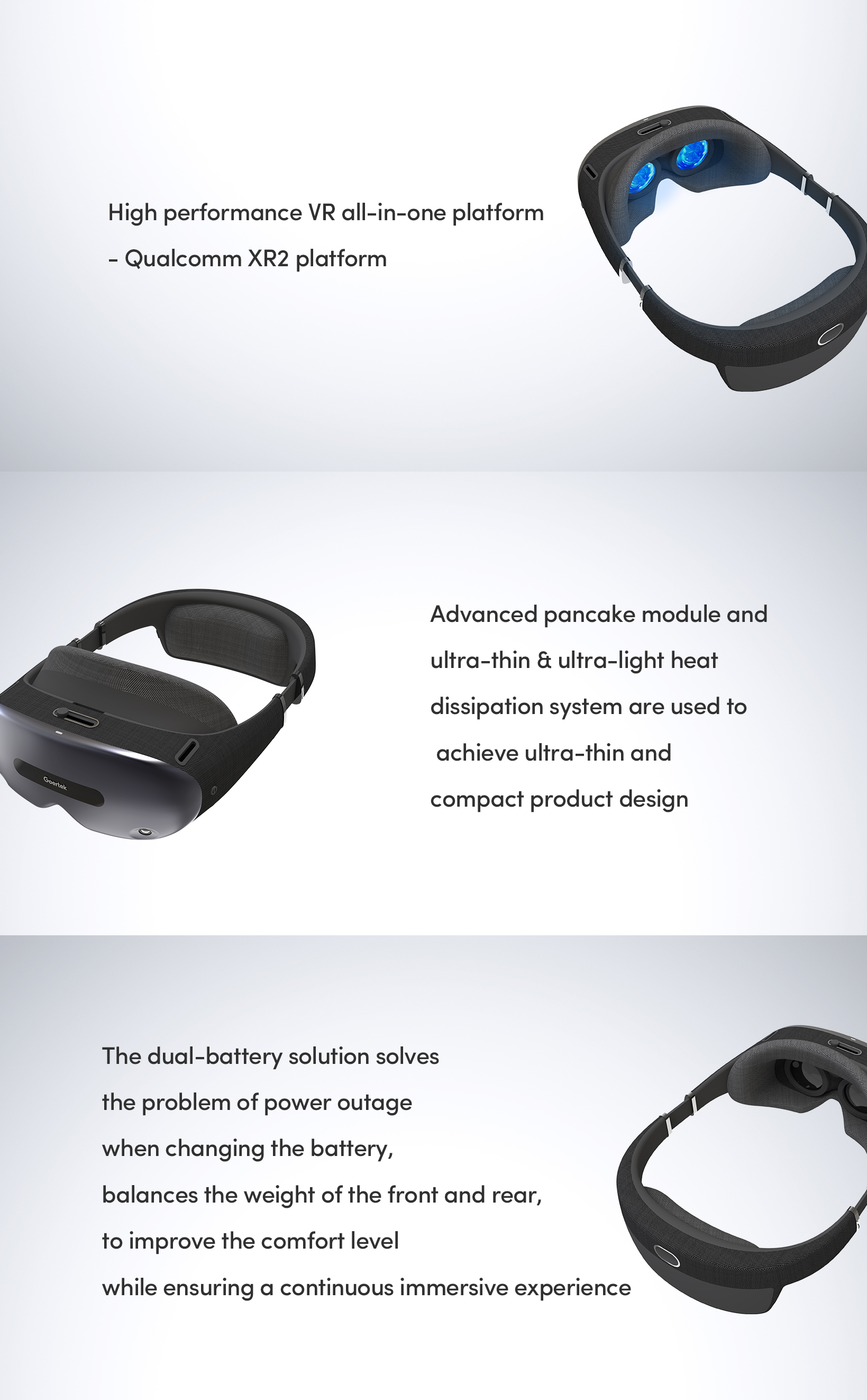 The VR All-in-one reference design based on Qualcomm Snapdragon XR2 platform, using pancake optical module to achieve ultra-thin and compact product design, providing an immersive experience for consumers and enterprises.
